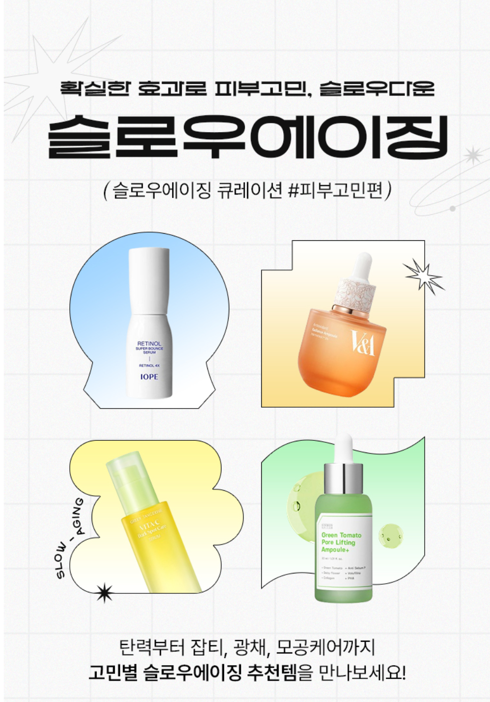 요즘 '슬로우에이징'이라는 말이 자주 들리죠? 슬로우에이징(Slow Aging)은 단지 얼굴의 주름을 없애거나 어려 보이는 것만을 목표로 하는 것이 아니라, 신체와 정신을 건강하게 유지하며 자연스럽게 나이 들어가는 라이프스타일을 뜻합니다.  즉, 진정한 의미의 건강한 노화를 의미합니다. 이를 위해서는 식습관과 운동, 일상생활 속 작은 습관 변화는 물론, 나에게 맞는 영양제와 화장품 사용도 중요합니다.슬로우에이징을 위한 현실적이고 쉬운 실천법을 소개합니다.내몸에 꼭 필요한 영양 관리하기슬로우에이징에서 가장 먼저 실천해야 할 것은 바로 영양 관리입니다. 몸 안에서부터 건강을 챙기는 게 중요하니까요.✅ 항산화 영양제 추천비타민 C: 피부의 탄력을 유지하고 색소 침착 방지에 효과적입니다.비타민 E: 피부 보호와..
